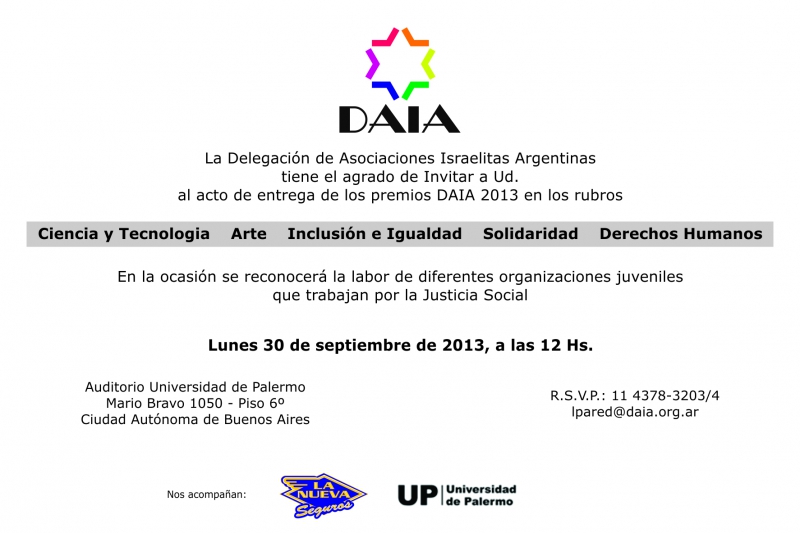 La DAIA pone en conocimiento que el decreto 1584/2010 establece en su artículo 6º: «Establécense como días no laborables para todos los habitantes de la Nación Argentina que profesen la religión judía los días del Año Nuevo Judío (Rosh Hashana), DOS (2) días, el Día del Perdón (lom Kipur), UN (1) día ….». A su … Leer más