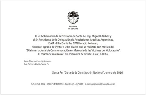 Esta tarde, se realizará el acto por el Día Internacional de Conmemoración de las Víctimas del Holocausto