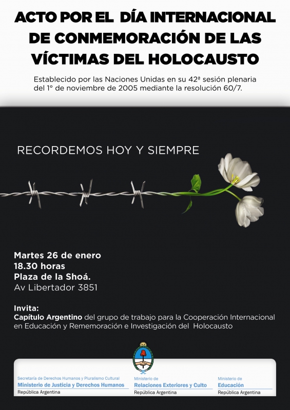 Esta tarde, se realizará el acto por el Día Internacional de Conmemoración de las Víctimas del Holocausto