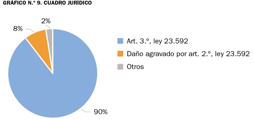 El último Informe sobre Antisemitismo en la Argentina indica que el 90% de los casos recibidos en la DAIA están tipificados en la Ley Antidiscriminatoria Nº 23.592, que establece la pena de entre un mes y tres años de prisión para aquellos que “realizaren propaganda basados en ideas o teorías de superioridad de una raza o de un grupo de personas de determinada religión, origen étnico o color, que tengan por objeto la justificación o promoción de la discriminación racial o religiosa en cualquier forma. En igual pena incurrirán quienes por cualquier medio alentaren o iniciaren a la persecución o el odio contra una persona o grupos de personas a causa de su raza, religión, nacionalidad o ideas políticas”.